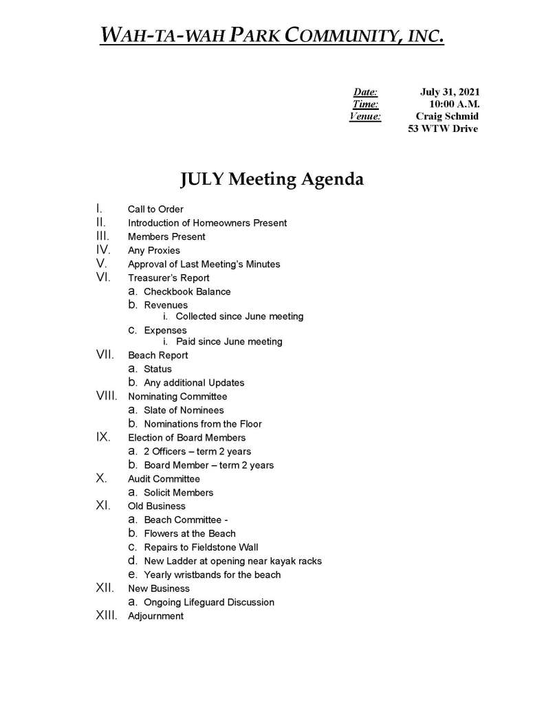 Wah-Ta-Wah Park Beach Association meeting
