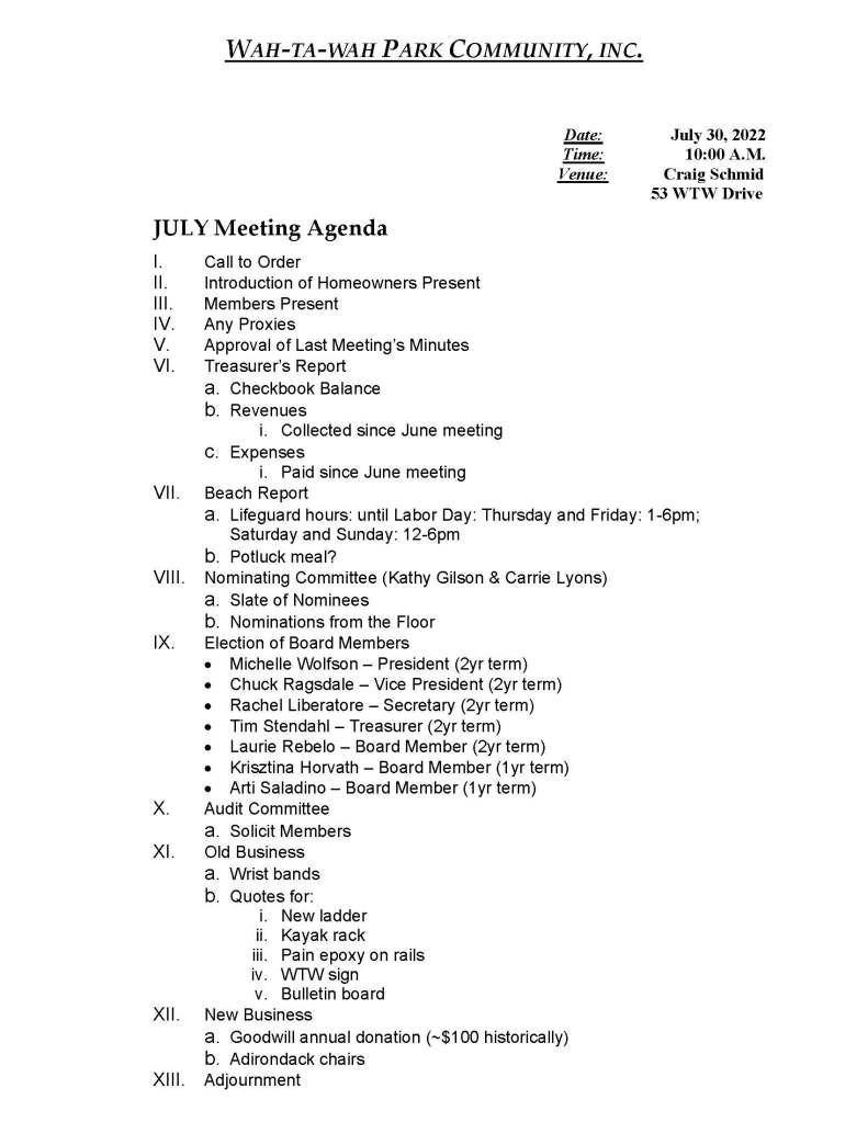 Wah-Ta-Wah Park Beach Association Meeting