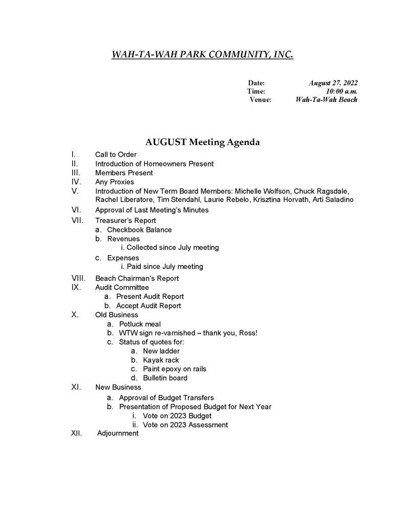 Wah-Ta-Wah Park Beach Association Meeting
